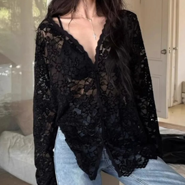 Блузка кружевная чёрная