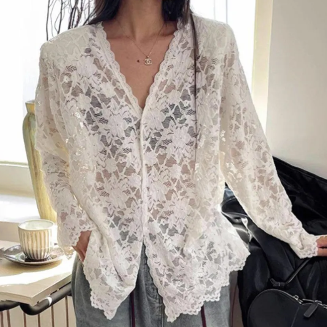 Блузка кружевная белая
